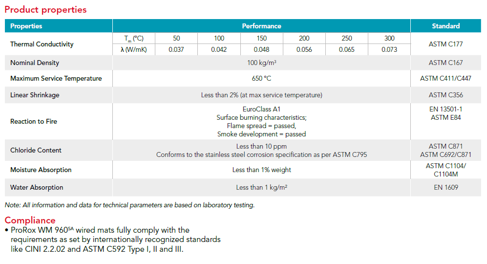 The ProRox WM 960-SA is a lightly bonded heavy stone wool mat stitched with galvanized wire on a galvanized wire mesh. The wired mat is especially suited to industrial applications such as high-pressure steam pipes, reactors, and furnaces, where high and great demands are placed on the insulation which withstands extreme temperatures.