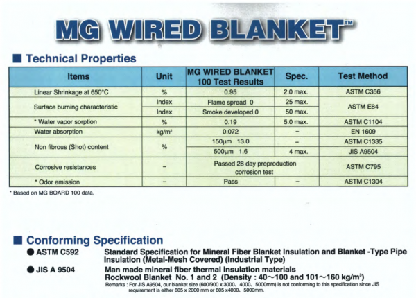 • The ROCKWOOL MG WIRED BLANKET is inorganic spun fibers made from natural rocks and minerals bonded by an organic binder.